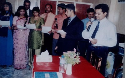 Silvester D'Souza to the stage and then honored them with a flower bouquet. Also the Presidents