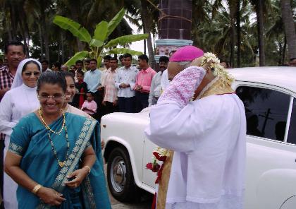 Kanajar, May 14: Most Rev. Bishop of Mangalore Diocese, Dr. Aloysius Paul D'Souza, was at Kanajar on his pastoral visit to the parish. He was given a warm welcome by Parish Priest Rev. Fr. Alwyn D'Cunha, Vice-President Mrs. Celestene D'Souza, Mother Superiors Sr. Prefilda D'Sa & Sr. Leena Danthi and Mr. Marian Castelino.