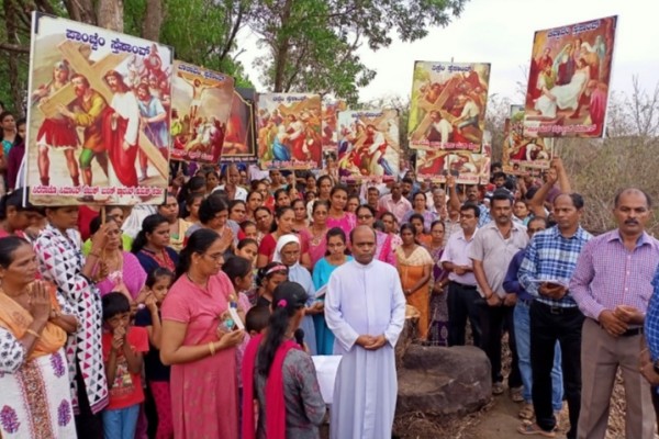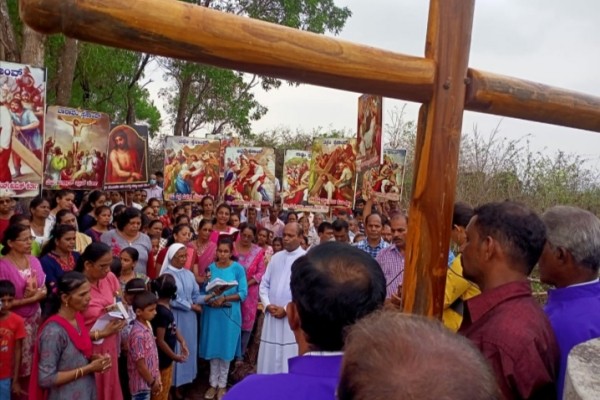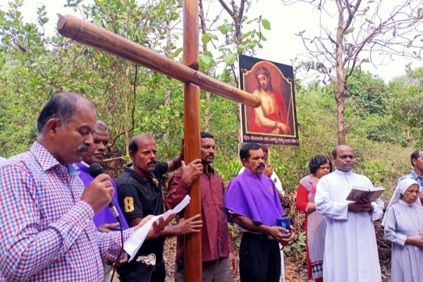 Kanajar, Apr 8: Way of cross was conducted at Hadankoli hill on the last Friday of the Lenten.